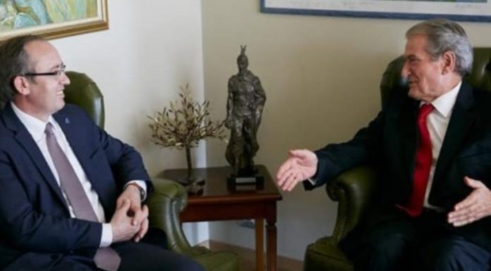 Në vizitën e tij të parë zyrtare në Shqipëri, kryeministri Avdullah Hoti u prit edhe nga Sali Berisha.