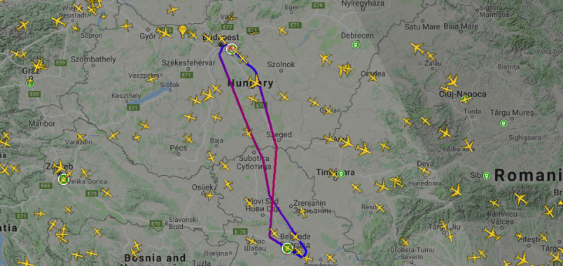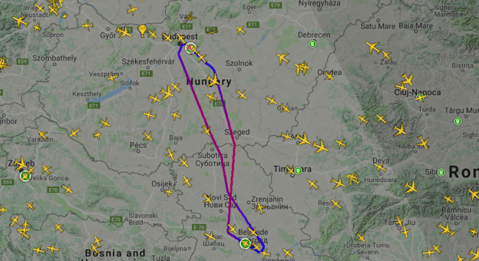 Avioni luksoz privat të cilin e shfrytëzon qeveria hungareze dhe biznes-elita, mes të cilëve edhe kryeministri Viktor Orban, mëngjesin e të së mërkurës, 14 nëntor, ka fluturuar për Beograd, dhe më pas është kthyer në Budapest.