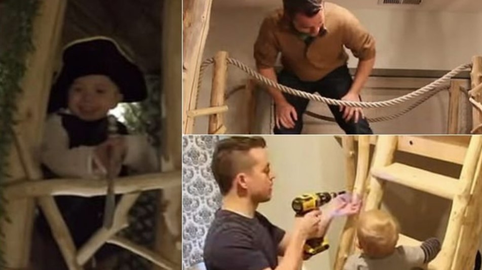 Babai i katër fëmijëve vendosi gjithashtu një kovë të vogël në një sistem për t’i lejuar fëmijët të ngrinin lodrat e tyre deri në katin e sipërm.