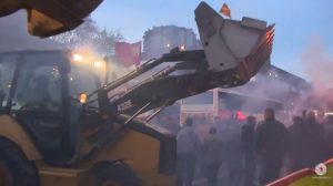 Ekskavatorët kanë qëndruar pranë Parlamentit, të cilët së bashku me disa protestues maqedonas kanë paralajmëruar se ata janë të gatshëm për çdo çmim të mbrojnë Maqedoninë siç thonë ata nga platforma tiranase.