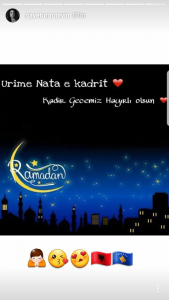 “Urime Nata e Kadrit”, ka shkruar ajo mbi një fotografi të publikuar në llogarinë personale në Instagram.