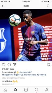 Detaji ku vërehet e gjitha kjo është se numri i fansave në rrjete sociale dallon dhe postimi i fundit është prezantimi i Ousmane Dembeles.