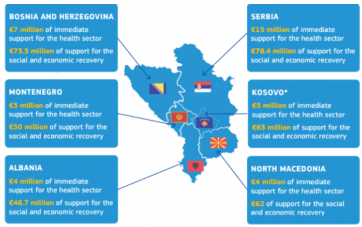 Bashkimi Europian ka mobilizuar mbi 700 milionë euro për Ballkanin Perëndimor në luftën kundër COVID-19 sipas Komisionerit për Zgjerimin Oliver Varhelyi, përcjell GazetaExpress.