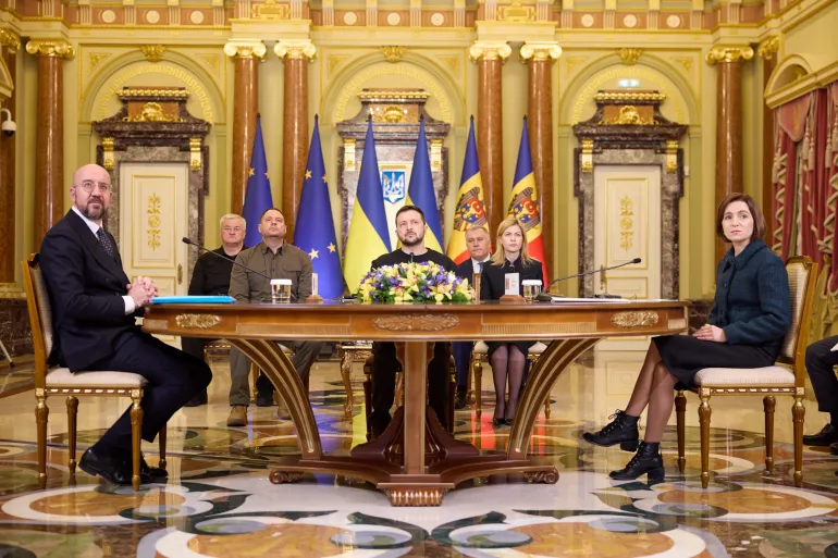 Udhëheqësit e vendeve anëtare të Bashkimit Evropian vendosën të hapin negociatat e anëtarësimit me Ukrainën dhe Moldavinë, si miratuan statusin e kandidatit për Gjeorgjinë, njoftoi të enjten presidenti i Këshillit Evropian, Charles Michel, duke e shtyrë dhe më tej sfidimin gjeopolitik të Rusisë me afrimin në kufijtë e saj. Të tre vendet ishin dikur pjesë e Bashkimit Sovjetik, sot njëri i pushtuar e dy të tjerët të këcënuar.