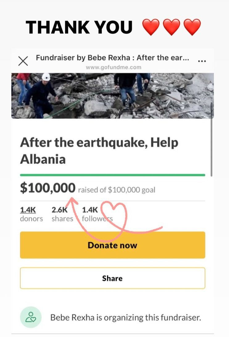 Përmes një postimi në InstaStory, Bebe ka konfirmuar se paratë tashmë janë grumbulluar dhe i ka falënderuar të gjithë ata që kanë dhuruar.