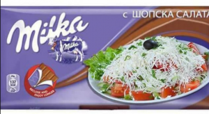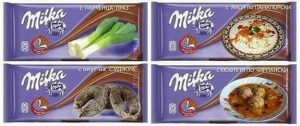 Ata kanë postuar fotografi me shije të ndryshme të çokollatës dhe kësaj here milka me presh, milka me sallat shope, milka me salsiçe e të tjera