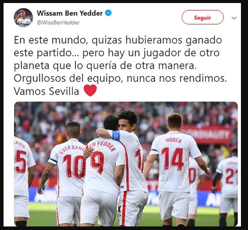 “Në këtë botë, ne do ta kishim fituar këtë lojë… por ka një lojtar nga një planet tjetër që deshi ndryshe. Krenar për ekipin, kurrë nuk heqim dorë. Përpara Sevilla”, ka shkruar sulmuesi francez.