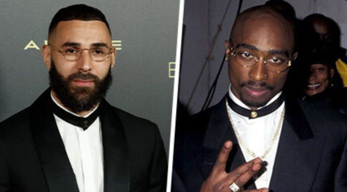 Karim Benzema mbërriti në ceremoninë e Topit të Artë me syze elegante, ju kujton dikë në këtë formë? Po, kjo është një referencë e bukur për reperin Tupac.