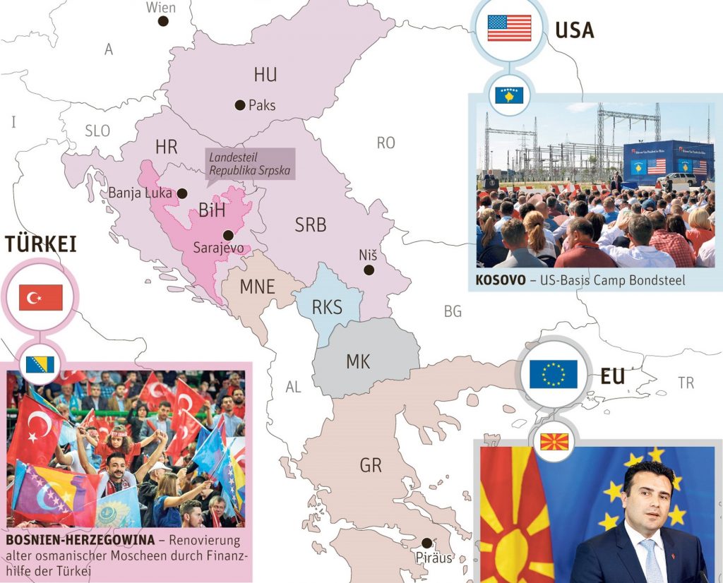 Nëse shihni investimet e Shteteve të Bashkuara të Amerikës në juglindje të Europës kanë qenë gjithmonë të lidhura me Bashkimin Europian atje ku influenca e Perëndimit është ende e fortë. Por, shumë vende nuk janë integruar ende në BE. Në këtë boshllëk, Rusia po përpiqet të shtrijë influencën e saj për arsye gjeopolitike. Shefi i Qendrës për Europën Juglindore në Universitetin e Graz, Florian Bieber thotë se kjo do të bëhet realitet nga mungesa e impenjimit të BE-së dhe ambivalenca e SHBA-ve.