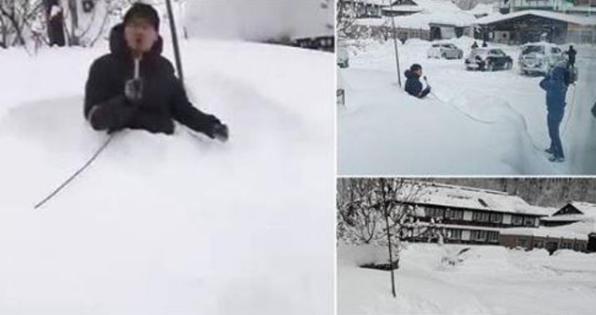 Reporteri i NKH raportoi se thellësia e dëborës arrinte belin e tij në qytetin e Sukayu, por kishte gjetur pikën ku dëbora ishte mbledhur më shumë