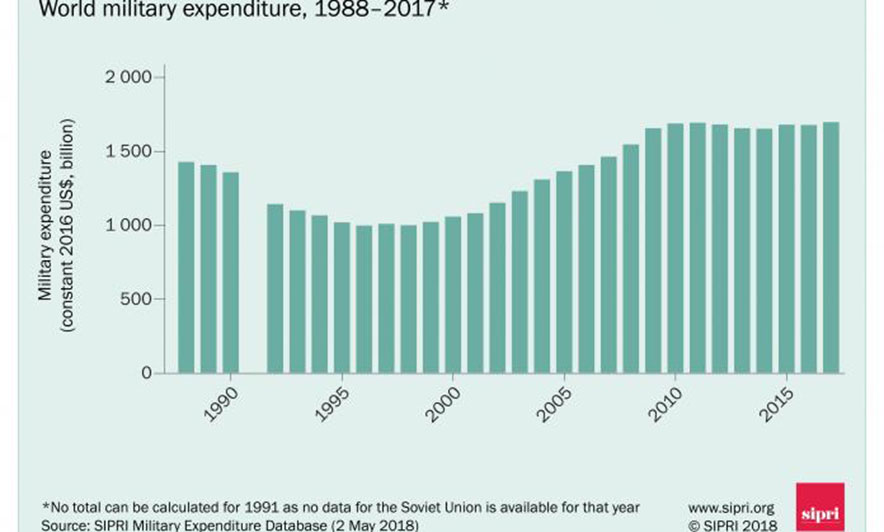 Raporti i fundit i Institutit ndërkombëtar të Kërkimeve për Paqen, në Stockholm, tregon se nepër botë, 1.73 trilionë dollarë u investuan për qëllime ushtarake gjatë vitit të kaluar, gjë që shënon rritje krahasuar me vitin 2016.