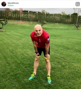 I veshur sportiv, me fanellën që mban numrin 5 të ish kapitenit Lorik Cana, Blendi duket gati për një ndeshje futbolli. /albeu
