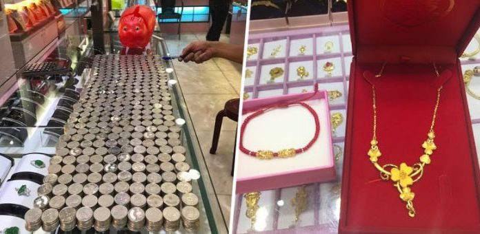 Kohët e fundit,shitesit e një dyqani bizhuterish në Tajvan, Mahua Jewellery, u befasuan kur burri i quajtur Wang erdhi në dyqan me arken e kursimit me derrkuc plot me monedha për të blerë disa stoli për gruan e tij.