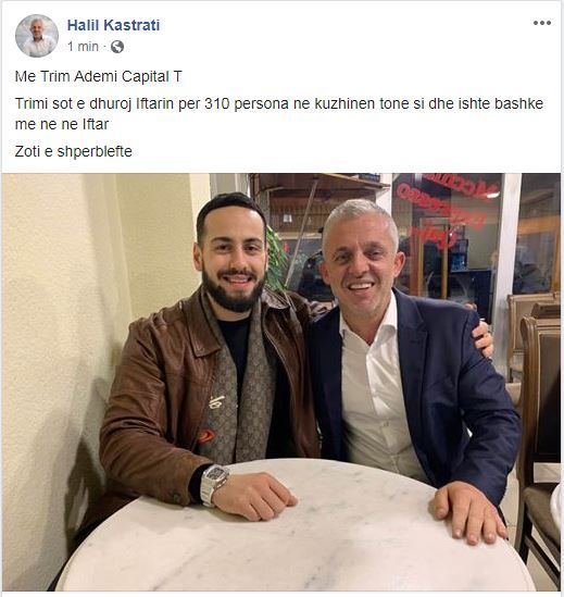 “Trimi sot e dhuroj Iftarin për 310 persona ne kuzhinën tonë si dhe ishte bashkë me ne në Iftar. Zoti e shpërbleftë”, ka shkruar Kastrati në Facebook.