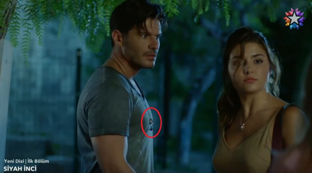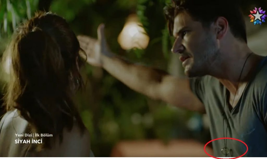 E këtë qafore, ai po e mban të varur me unazë edhe në serialin e ri ‘Siyah Inci’ (Perla e Zezë).
