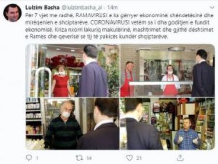 “Për 7 vjet me radhë, RAMAVIRUSI e ka gërryer ekonominë, shëndetësinë dhe mirëqenien e shqiptarëve. CORONAVIRUSI vetëm sa i dha goditjen e fundit ekonomisë. Kriza nxorri lakuriq makutërinë, mashtrimet dhe gjithë dështimet e Ramës dhe qeverisë së tij të pakicës kundër shqiptarëve”, shkruan Basha.