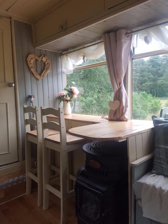 Nga një autobus i vjetër me ulëse të prishura dhe dysheme të shkatërruar, ky autobus tani ka shtretër, kuzhinë, banjo dhe kamin.