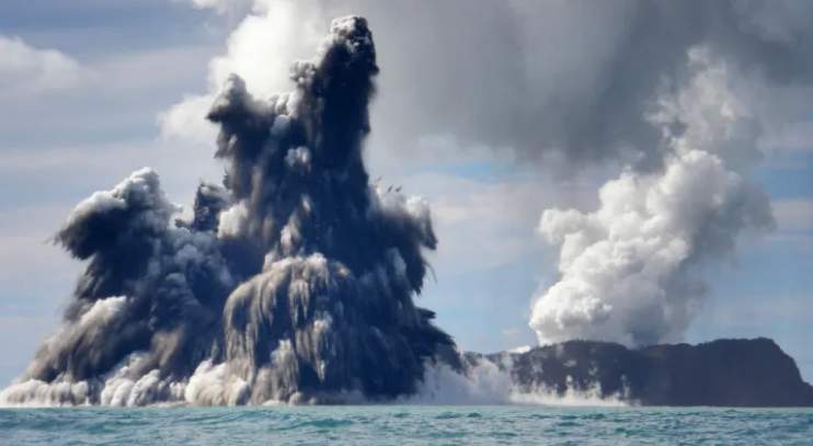 Vetëm njëmbëdhjetë orë pasi vullkani filloi të shpërthejë, një valë e re u shfaq mbi sipërfaqen e ujit, sipas NASA-s, e cila kapi imazhe satelitore të fryrjes së sapoformuar.