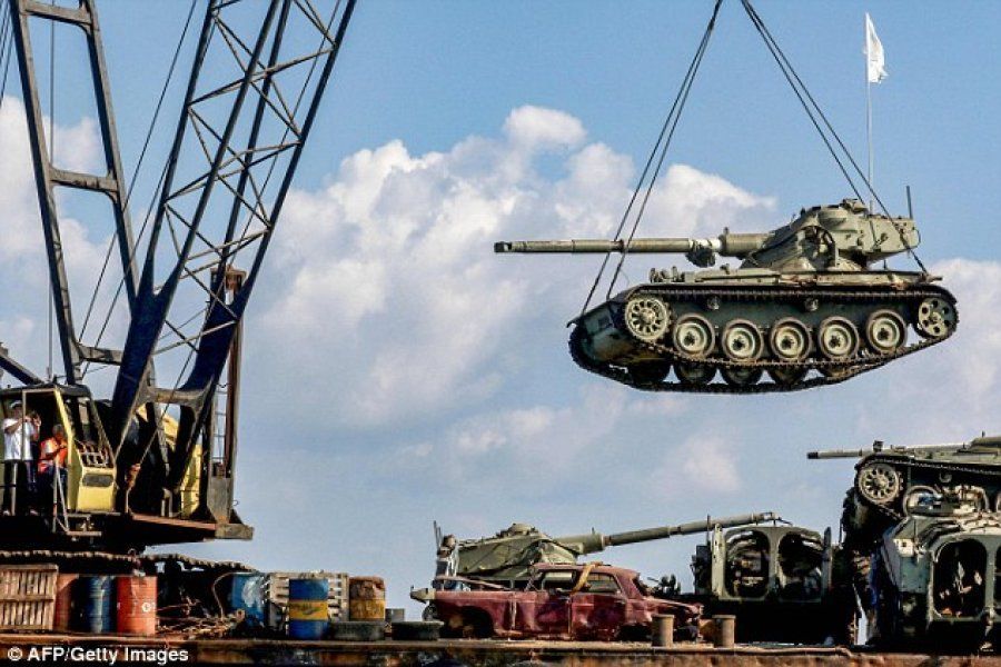 Mjetet e rënda ushtarake janë lëshuar në Detin Mesdhe, ashtu si furgonët dhe autobusët.