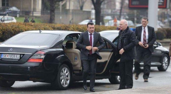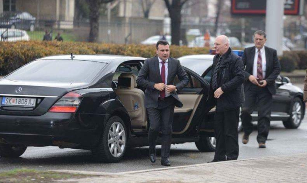 Kjo është foto në të cilën shihet kryeministri Zaev duke dalë nga një makinë e markës “Mercedes”, e për të cilin Mickoski pretendon se është Mercedesi luksoz që e kishte blerë Nikolla Gruevski.