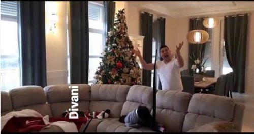 Në imazhe duket Ermali duke luajtur me djalin e vogël, ndërsa në sfond duket edhe pema e Krishtindjeve. /albeu