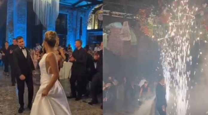 Arbër Hajdari dhe partnerja e tij nga Kosova, Vlera kanë kurorëzuar mbrëmjen e djeshme dashurinë e tyre 5 vjeçare në martesë. Ndryshe nga çfarë jemi mësuar të shohim nëpër dasma, çifti ka zgjedhur që të bëjë hyrjen në lokal me një këngë të këngëtares së mirënjohur, Vaçe Zelës.