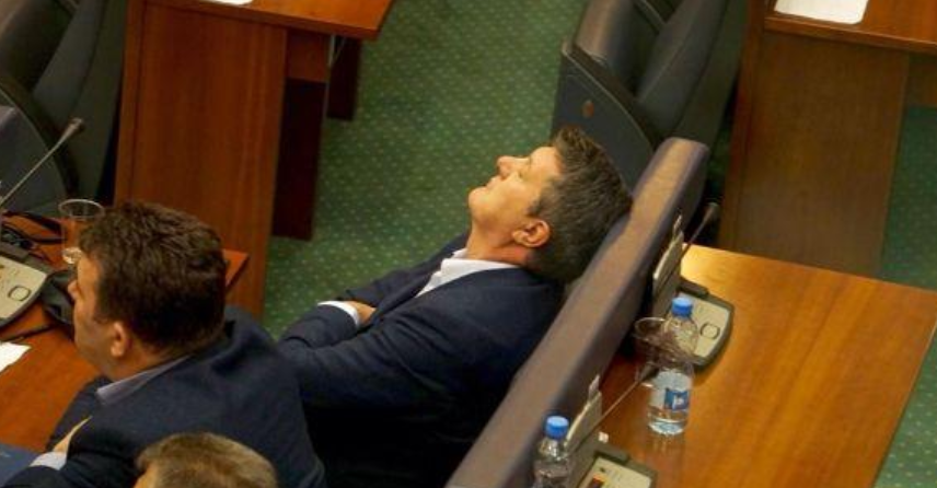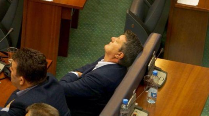 Kryeministri Ramush Haradinaj u kap i pari nga kamerat duke fjetur në Kuvend, ndërsa pas tij u kotën edhe Dardan Gashi e Milaim Zeka.