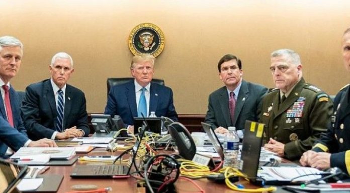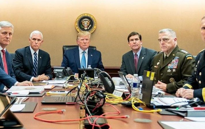 Helikopterët u ngritën në momentet pasi u mblodhën krerët e Shtëpisë së Bardhë. Trump dhe ekipi i tij – përfshirë zv/Presodentin Mike Pence, Këshilltarin e Sigurisë Kombëtare Robert O’Brien dhe Gjeneralin Majk Milley, shikuan aksionin ushtarak sikur të kishin shkuar në një kinema.