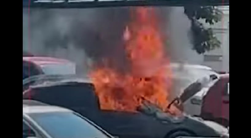 Një veturë është kapluar nga zjarri para pak çastesh tek sheshi Skenderbeu në Shkup, afër parkingut ku sipas informacioneve jozyrtare të Klan M nga temperatura ka marrë flakë.