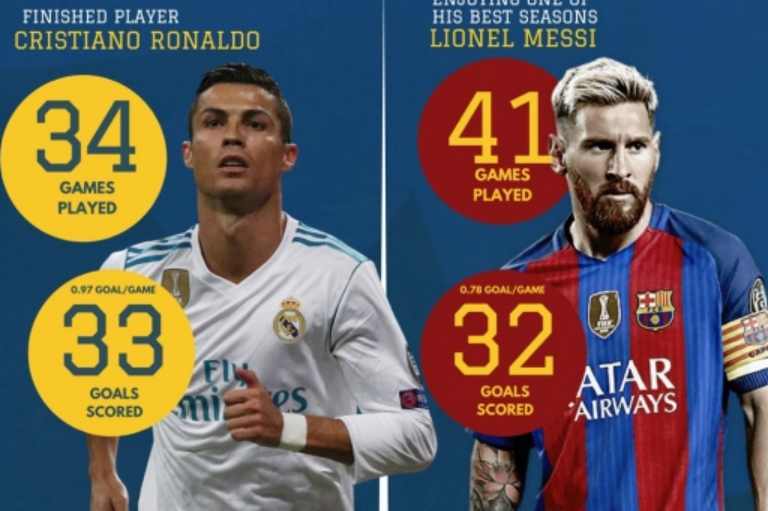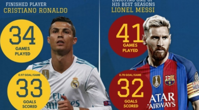 Ronaldos iu deshën 34 ndeshje për të shënuar 33 gola, ndërkohë kujtojmë startin e tmerrshëm të Ronaldo në fillim tësezonit, ku ishte një i panjohur për golin. Ndërsa Messi ka realizuar 32 gola në të gjitha garat në 41 paraqitje./albeu