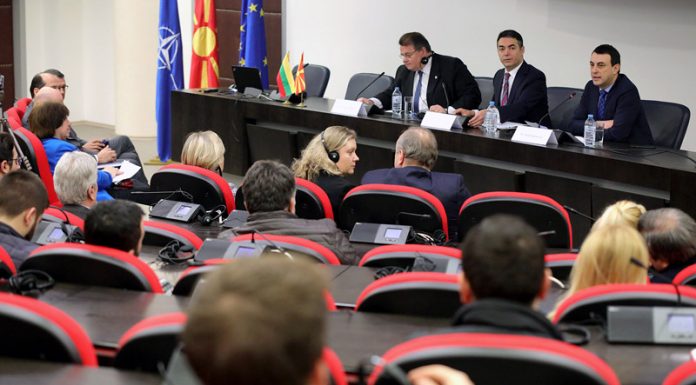 “Këtë javë apo në fillim të javës së ardhshme duhet të nënshkruhet Protokolli për NATO. Pastaj ai duhet të kthehet në Parlamentin grek për ratifikim. Shpresoj se pastaj të gjithë miqtë tanë, ndërsa mes të parëve është Lituania, do ta ratifikojnë Protokollin në kuvendet e tyre. sapo të ratifikohet në Parlamentin grek do ta marrim ulësen në Aleancë. Dhe atëherë hyjnë në fuqi ndryshimet kushtetuese dhe dispozitat e tjera të Marrëveshjes së Prespës”, tha Dimitrov në tribunën në MPJ të organizuar nga Info Qendra për integrimet euroatlantike ku mori pjesë edhe ministri i Punëve të Jashtme i Lituanisë Linas Linkeviçius, i cili është për vizitë zyrtare në Maqedoni.