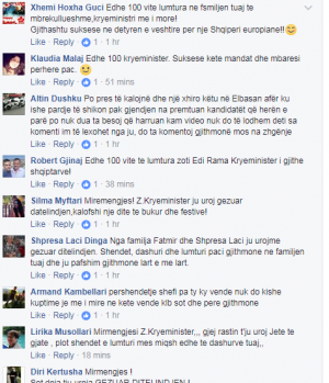 Edhe pse në facebook-un e kryeministrit nuk është e hapur mundësia për ta uruar, sepse postimet i ka të mbyllura, kjo nuk i ka ndalur ndjekësit e tij për ta uruar, dhe nuk janë të paktë në numër.