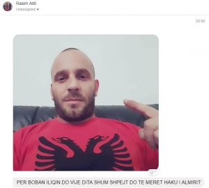 “Për Boban Iliqin do të vijë dita shumë shpejtë, do të merret haku për Alimirin”, thuhet në mesazhin e Alitit dërguar në redaksinë e portalit TetovaSot.