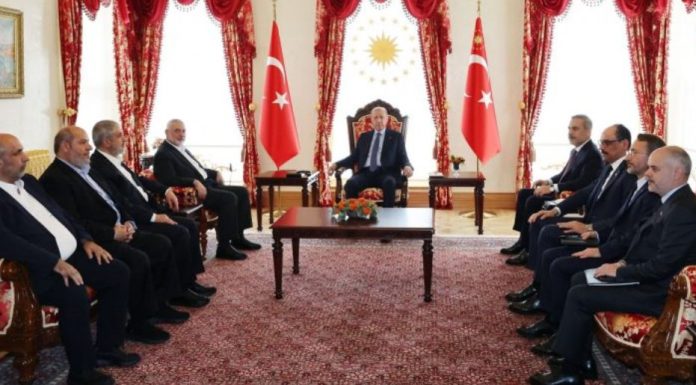 Sipas mediave turke, përcjell Telegrafi, takimi me dyer të mbyllura u zhvillua në zyrën e Dolmabahçes, me pjesëmarrjen e delegacioneve nga Turqia dhe Hamasi.
