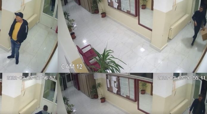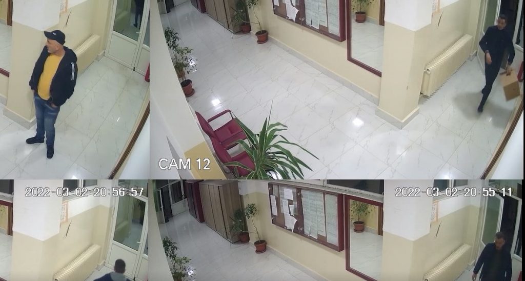 ”Stop” ka siguruar një video, ku ish-drejtori Ganiu ka hyrë në shkollë në orën 9 të darkës me disa persona të tjerë dhe ka marrë nga shkolla materiale dhe dokumenta.