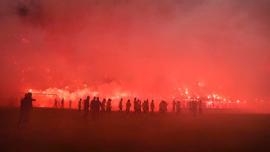 Tifozët kanë ndezur fishekzjarrë gjatë stërvitjes së skuadrës duke tentuar të motivojnë lojtarët para ndeshjes.