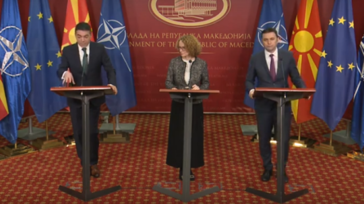 Zëvendës-kryeministri Bujar Osmani, zëvendës-kryeministrja e Mbrojtjes Radmilla Sheqerinska dhe ministri i Punëve të Jashtme, Nikolla Dimitrov mbajtën konferencë të përbashkët për shtyp.