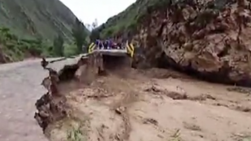 Në filmimin rrëqethës, shihet se si pjesët e rrugës gërryhen nga uji, derisa një sipërfaqe e shkëmbit thyhet dhe bie mbi urën, që thuhet se është ndërtuar para tri vitesh.