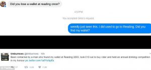 Një gazetar nga Londra, Tim Burrows e kishte humbur kuletën e tij në një festival leximi në vitin 2003, dhe këtë javë ka marrë një mesazh nga njeriu që e kishte gjetur atë.
