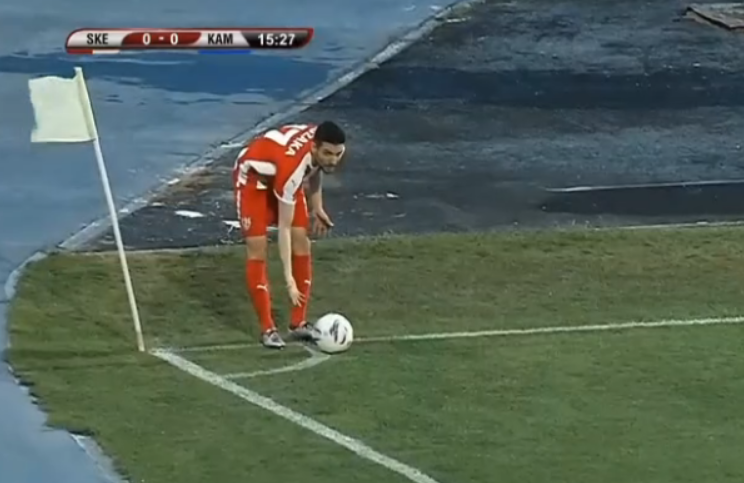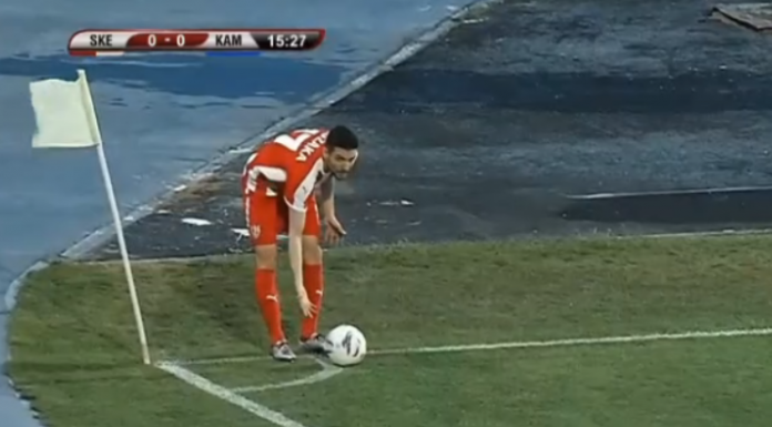 Një gol i çuditshëm është parë sot në kampionatin shqiptar të futbollit gjatë ndeshjes Skënderbeu-Kamza që përfundoi me rezultatin 3-2.