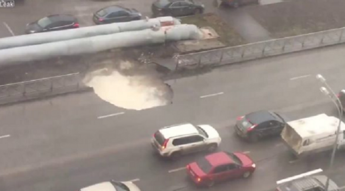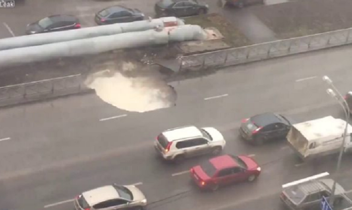 Momenti kur një pjesë e madhe e rrugës fundoset si rezultat i shpërthimit të një tubi me ujë të ngrohtë, është kapur në kamera. Pamjet e filmuara në Tyumen të Rusisë tregojnë bashkimin e dy tubave të rrugës, duke u formuar një vrimë e madhe në rrugë.