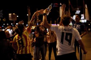 Një grup i vogël i mbështetësve të Barcelonës festoi fitoren në Copa del Rey në Cibeles.