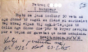 Një informacion për burgun nr.2 të Tiranës (sot te rruga “Mine Peza”) i vitit 1956.
