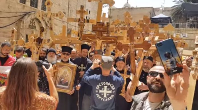Ata po e këndonin këtë këngë derisa po hynin në kishën ortodokse “Shpëtimi i Krishtit” në Jerusalem, kurse në duar mbanin në duar kryqin ortodoks.