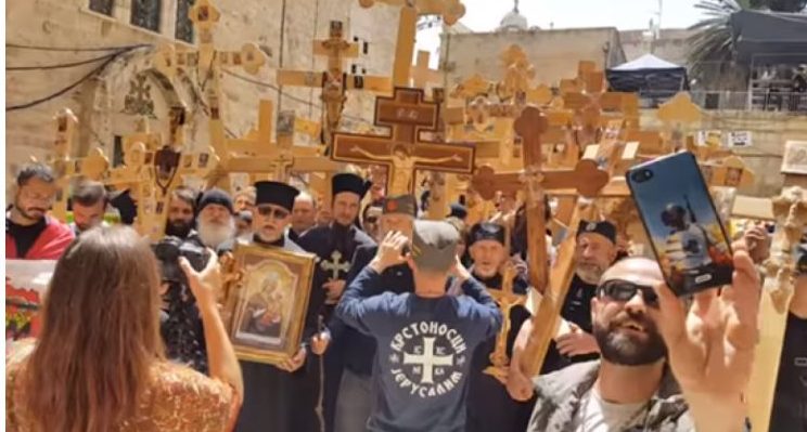 Një grup i serbëve, të mbledhur në qytetin e Jerusalemit për të festuar festën e Pashkëve Ortodokse, e kanë shfrytëzuar këtë ritual fetar për të kënduar këngë nacinaliste për Kosovën.