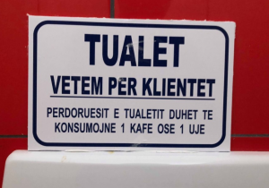Kjo pikë karburanti ka një tualet vetëm për klientët, por për shfrytëzimin e saj ata së paku duhet të blejnë një kafe apo një ujë.