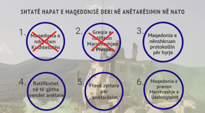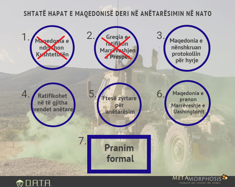 Hapi i pestë është ftesa për aderim, të cilën Maqedonisë do t’ia dërgojë Sekretari i përgjithshëm i NATO-s, kur të gjithë anëtarët do të njoftojnë SHBA-në, depozituesit e marrëveshjes, se e kanë ratifikuar protokollin e aderimit.