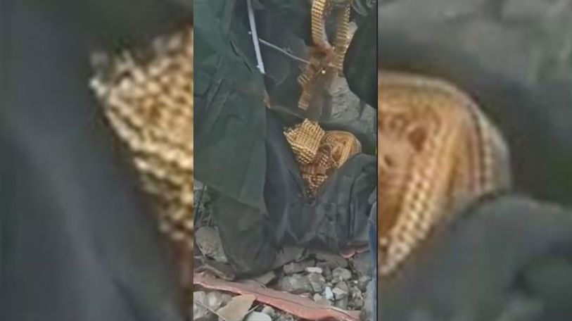 Një video amatore shfaq punonjësit duke hapur çantën me plot rripa të floririt, që e gjetën gjatë largimit të rrënojave përballë bankës Halk në Kahramanmaras.