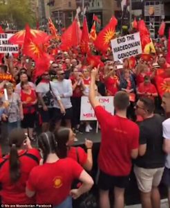Protestuesit që u mblodhën në Sydney, kënduan himnin kombëtar dhe marshuan përgjatë rrugës duke thirrur emrin “Maqedoni”.