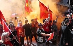 Protestuesit që u mblodhën në Sydney, kënduan himnin kombëtar dhe marshuan përgjatë rrugës duke thirrur emrin “Maqedoni”.